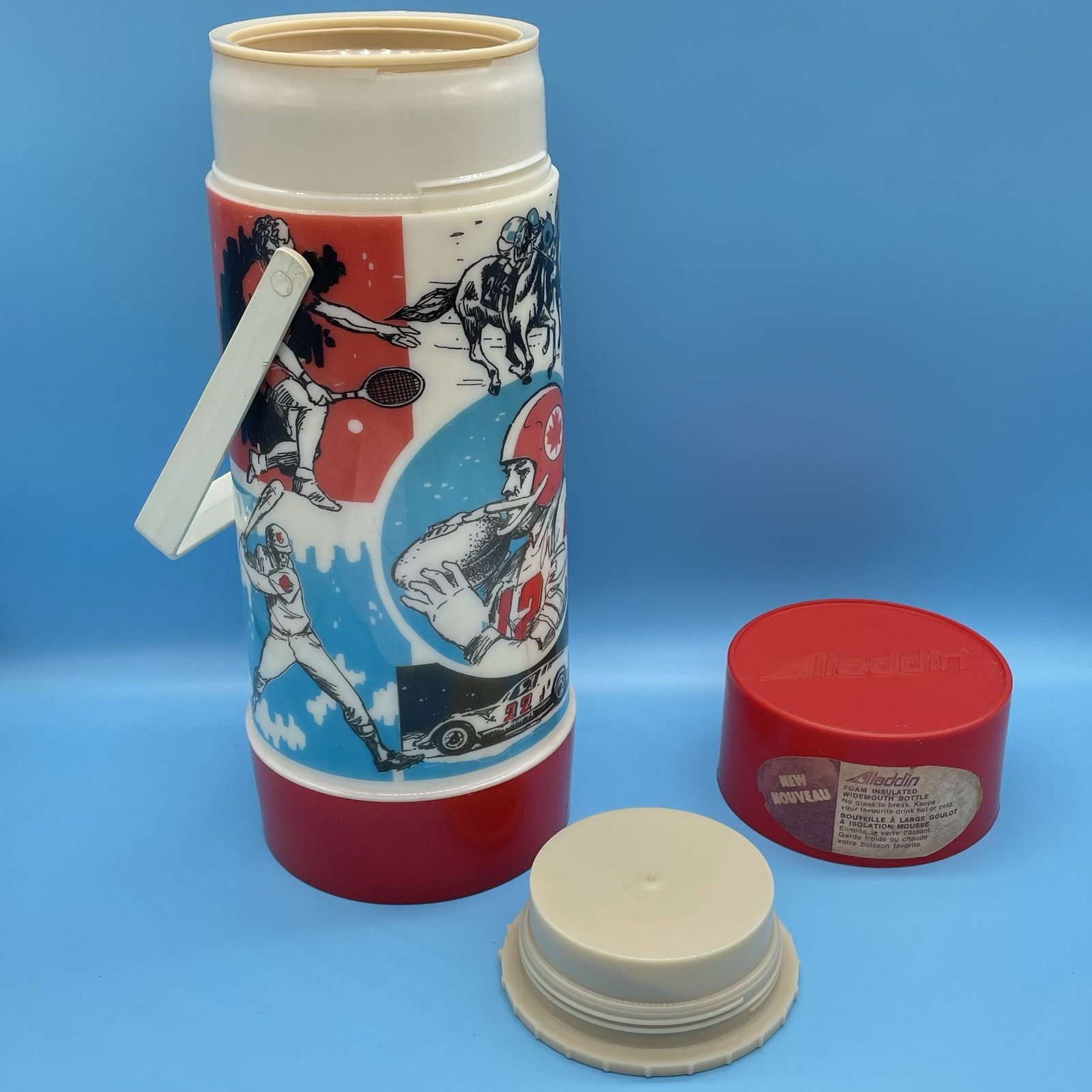 Aladdin Large 11” Widemouth Thermos with Canadian Sports Theme 1970s quantity