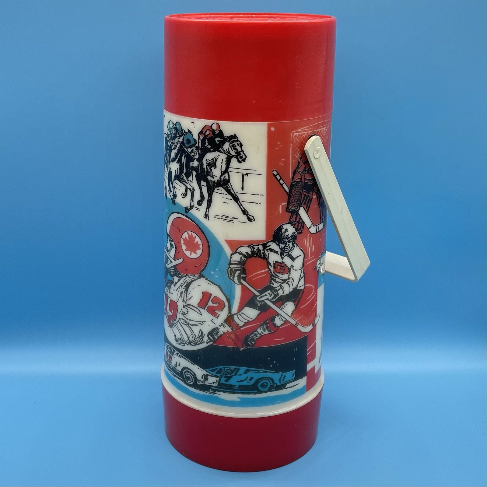 Aladdin Large 11” Widemouth Thermos with Canadian Sports Theme 1970s