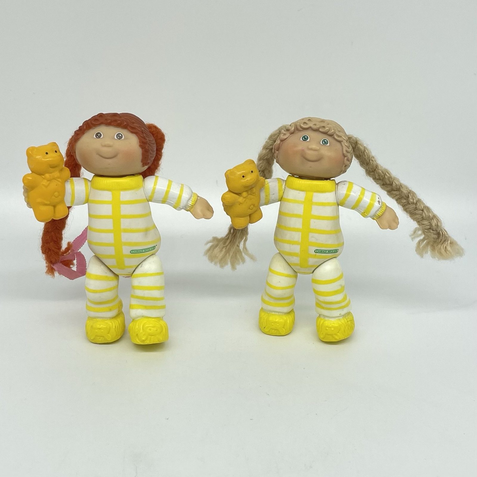 Cabbage Patch Kids – 2 Posable PVC Figures in Pyjamas With Teddybears 1984