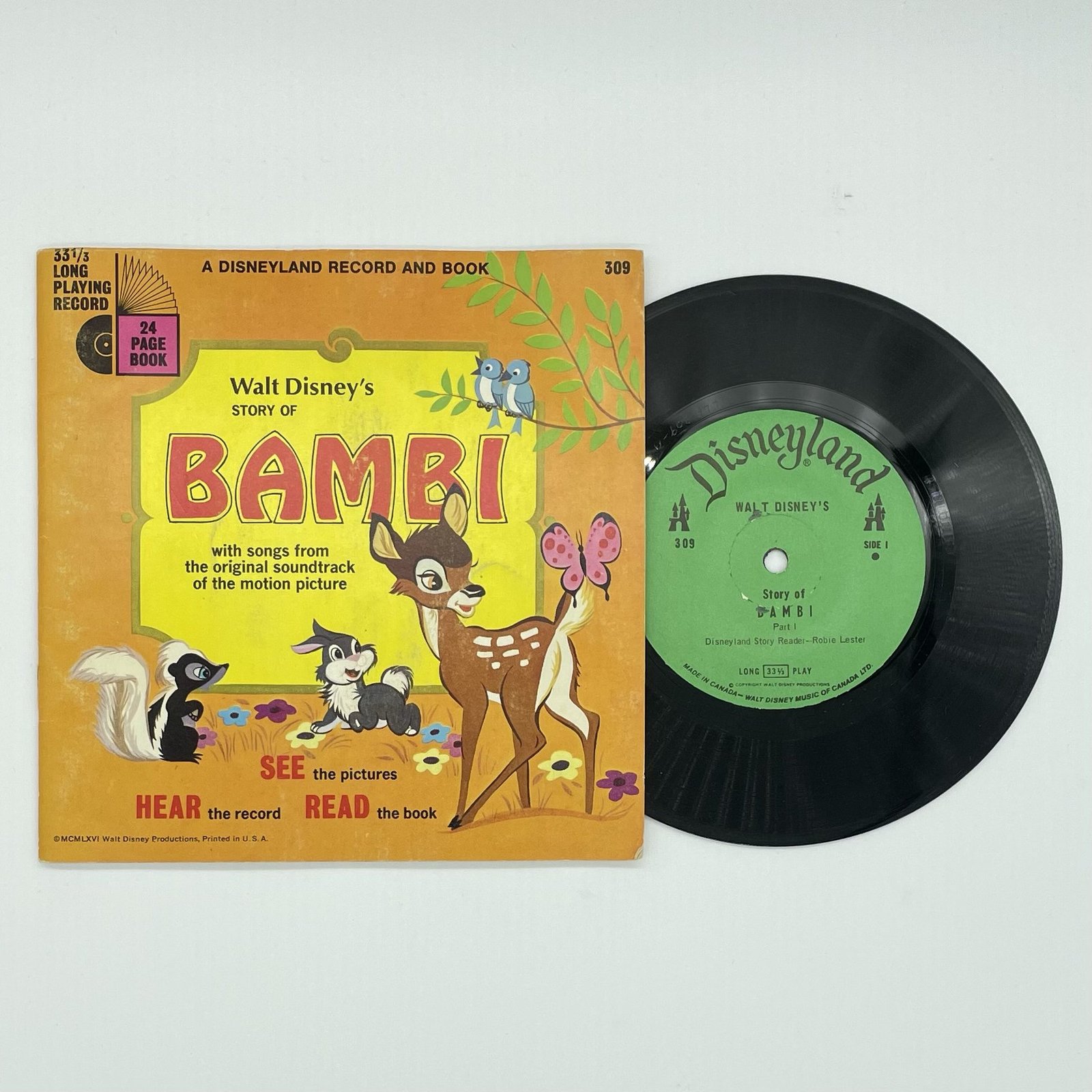 Relive the enchantment of your childhood with this delightful lot of Disney read-along books and records from the 1960s. Immerse yourself in the timeless tales of Lady and the Tramp, Winnie the Pooh, and Bambi, as you flip through beautifully illustrated picturebooks and listen to the accompanying records. Let nostalgia sweep over you as you rediscover the magic of these beloved Disney classics. Perfect for collectors and Disney enthusiasts alike, this lot will transport you back to a simpler, more whimsical time.