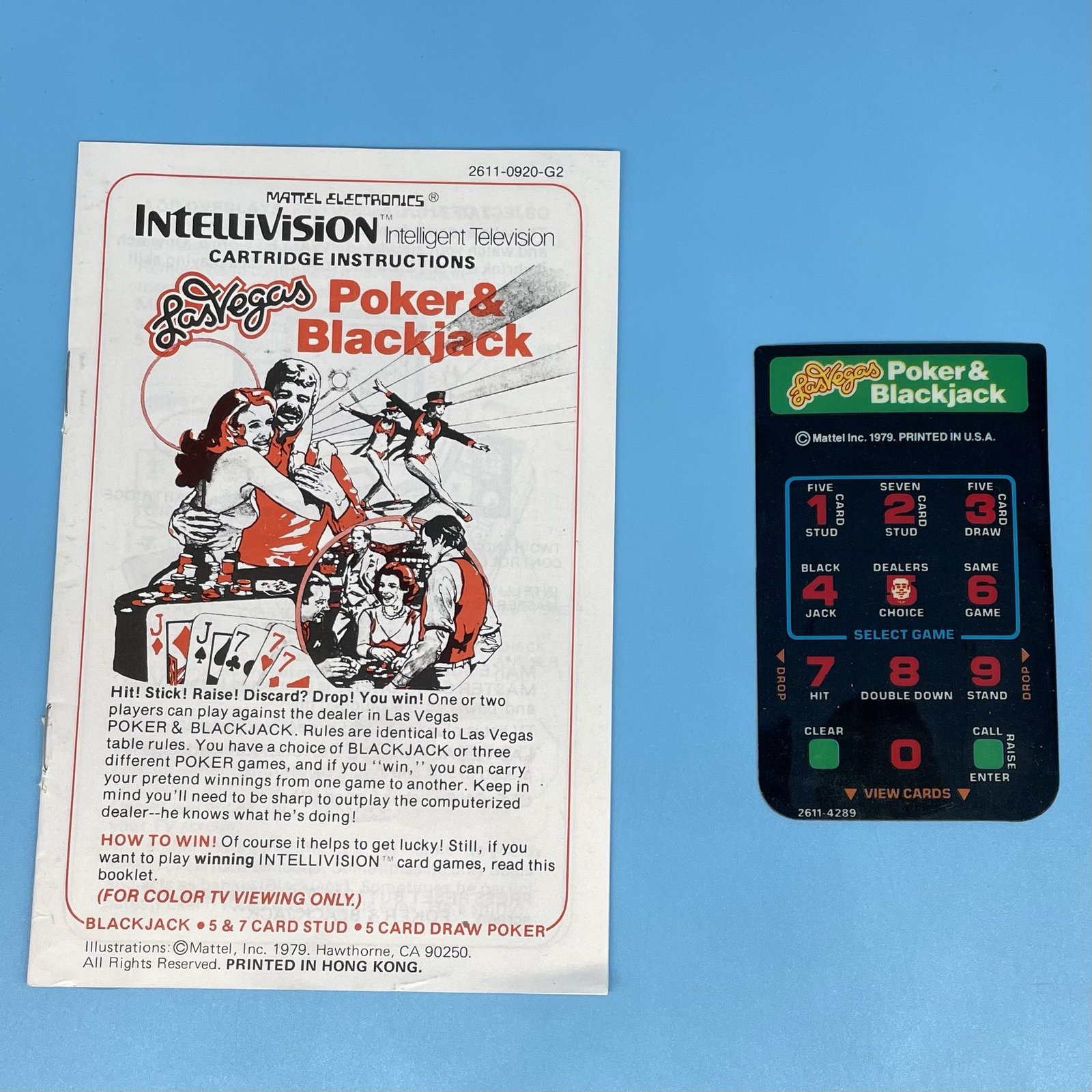 Intellivision Las Vegas Poker & Blackjack Game Instructions and Overlay 1982