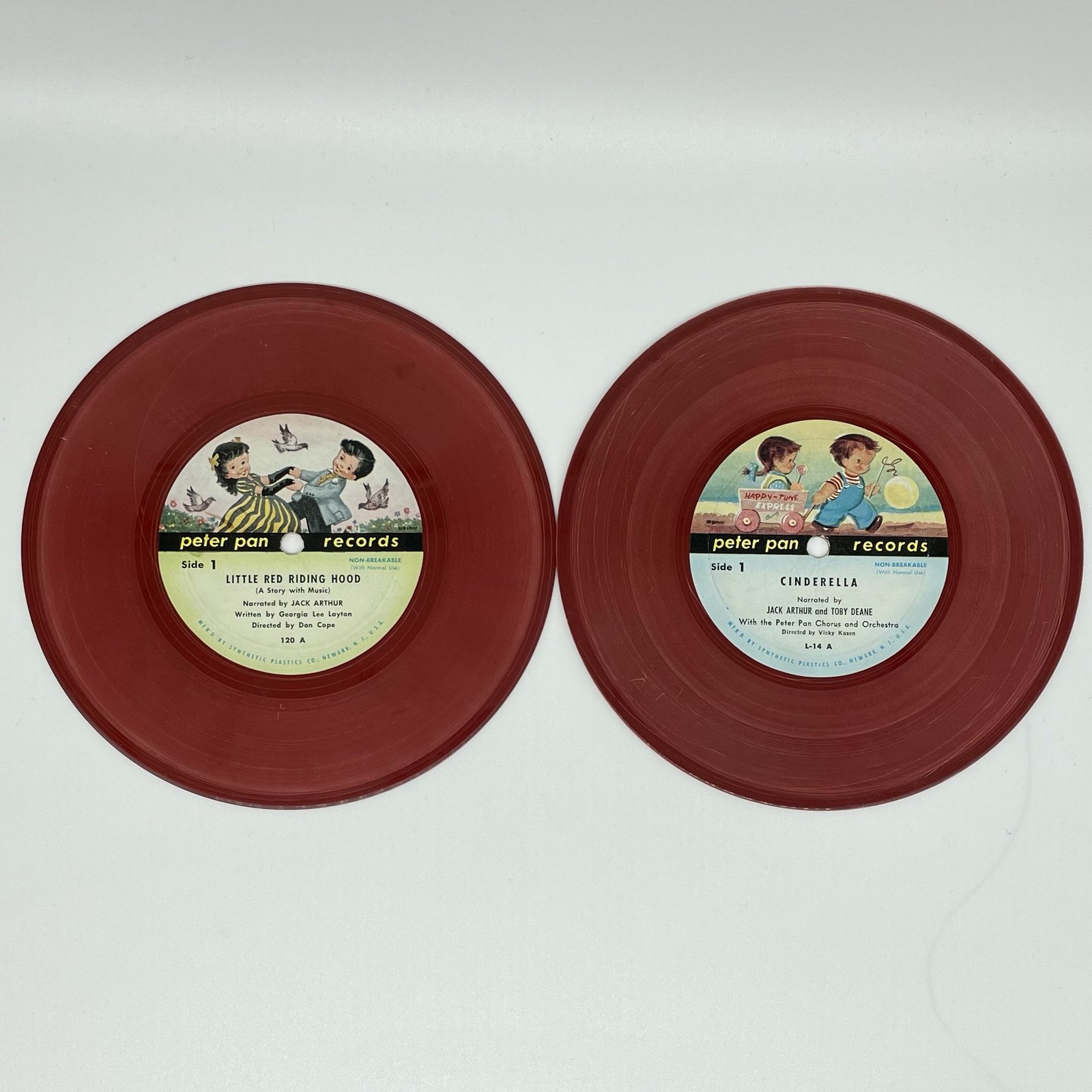 Peter Pan Records – Little Red Riding Hood and Cinderella 7” red vinyl 78 RPM from 1950s