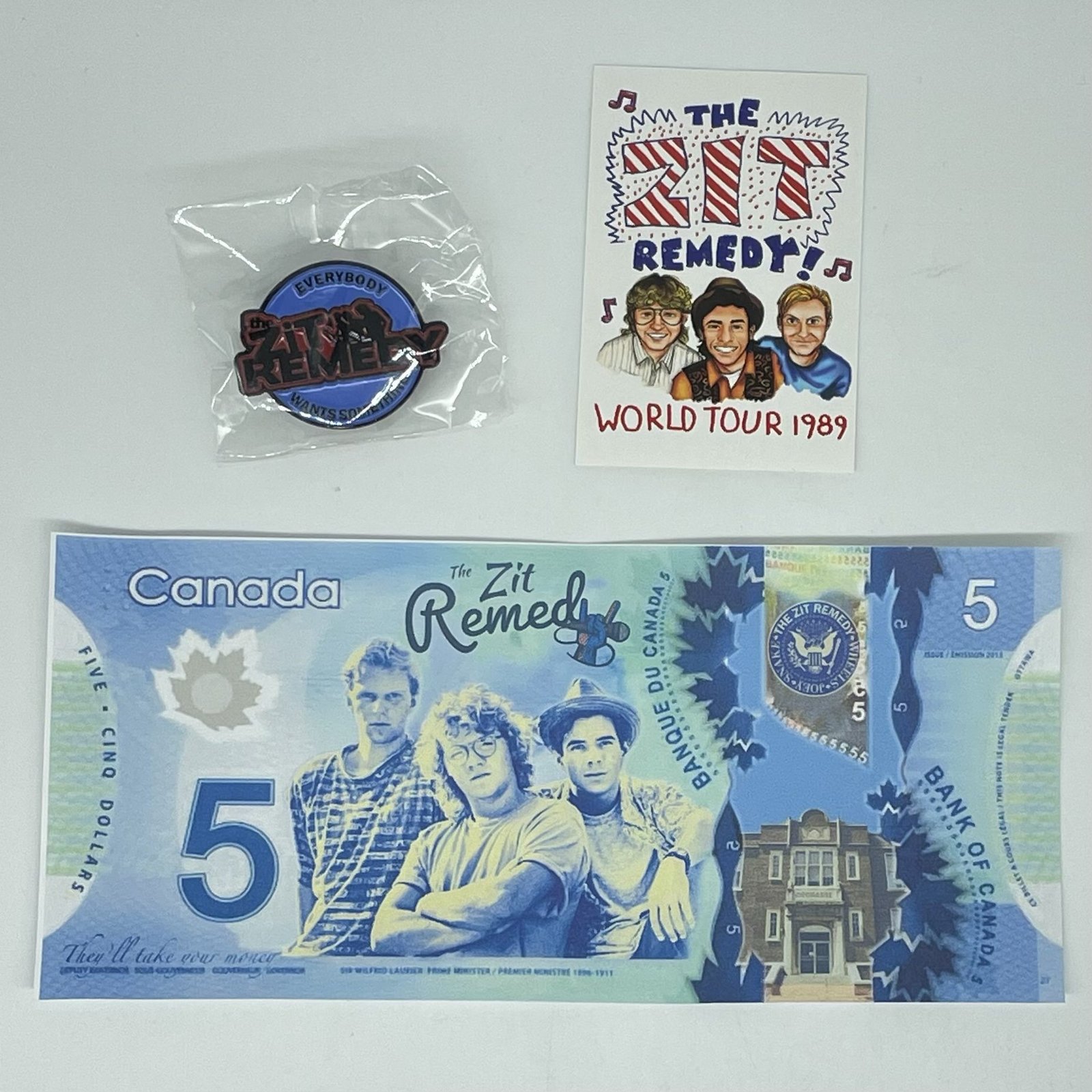 Step back in time with this Zit Remedy Swag Lot! This treasure trove of memorabilia will transport you to the iconic halls of Degrassi. With a pin, sticker and fake bill, it’s a nostalgic blast from the past!